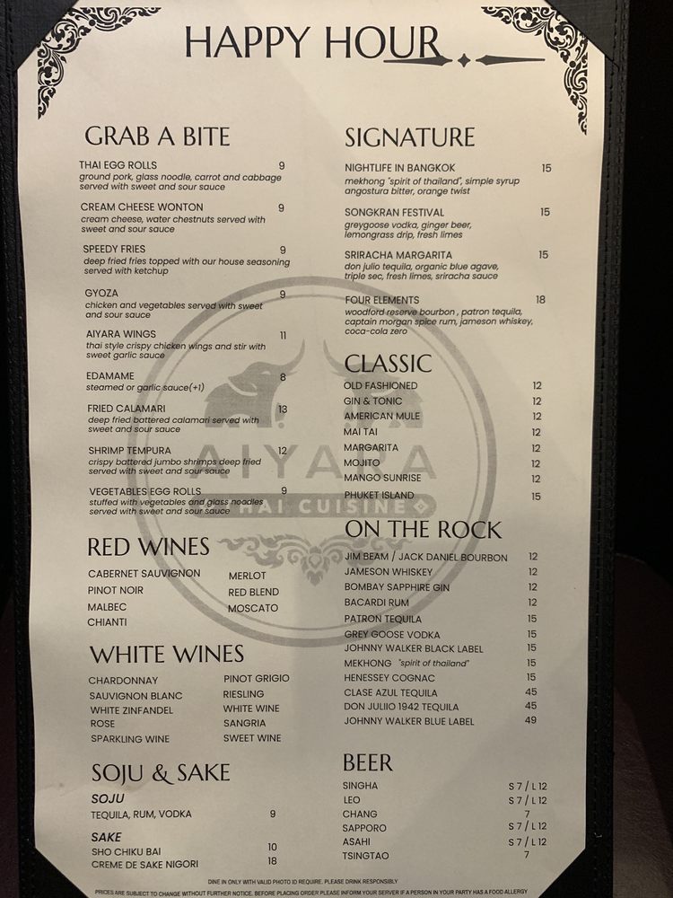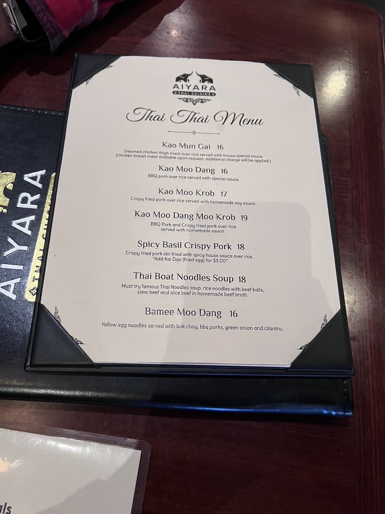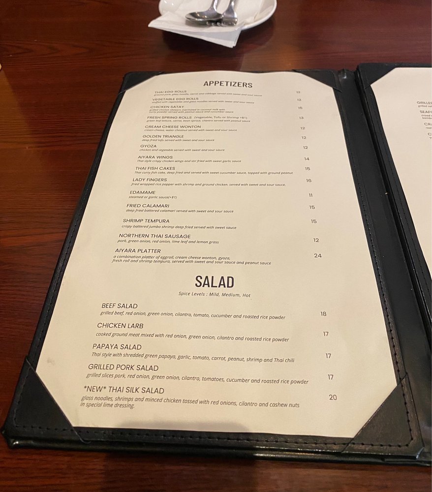 Aiyara Thai Cuisine, located in Temecula, CA, offers a delightful experience for lovers of Thai cuisine. The menu boasts a wide variety of appetizers, soups, salads, and main dishes, with options for vegans and vegetarians. From the flavorful Thai Egg Rolls to the aromatic Tom Yum Soup, each dish is crafted with fresh ingredients and authentic flavors. Customer favorites include the Pad Thai, Beef Salad, and Andaman Ceviche. The restaurant's ambiance is described as romantic and classy, making it perfect for a date night or special occasion. While some customers have noted minor discrepancies in dish preparation, the overall consensus is positive, with many praising the friendly staff and the quality of the food. Whether you're a Thai food enthusiast or new to the cuisine, Aiyara Thai Cuisine promises a memorable dining experience.